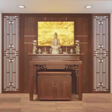 +Thiết kế bàn thờ tập chung vào sự đơn giản và tinh tế không cầu kỳ nhưng vẫn đảm bảo đầy đủ và ý nghĩa tâm linh